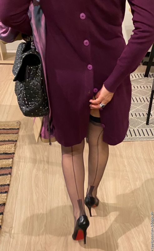J'imagine qu'en te voyant passer les hommes posent leurs yeux sur toi et te suivent du regard. Moi en tous cas c'est ce que je ferai. Même que je te suivrai pas à pas, en bon fétichiste des talons aiguilles que je suis. Et comme en plus il y a tes superbes jambes et que celles-ci sont gainées de bas nylon, je marcherais derrière toi, admiratif, ensorcelé, guidé la belle couture de tes bas,