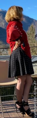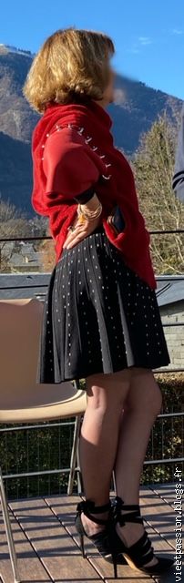 Toute sage mais toujours aussi sensuelle. Une jolie jupette, tes belles jambes et des talons aiguilles fabuleux. Tu es merveilleuse.