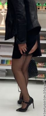 Remonter jusqu'à ton trésor non caché en suivant l'exquise couture de tes bas nylon gainant tes jolies jambes...