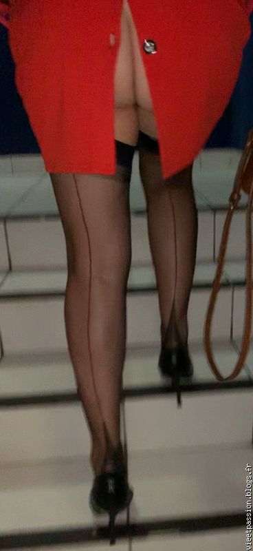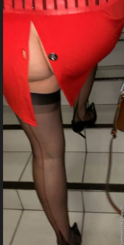 Tu crois que personne n'a rien vu... Hi hi... Mais les personnes qui auront vu ton sublime fessier sont restées béates, muettes et soufflées par tant de beauté. Car l'ensemble (robe ouverte, bas nylon et fesses merveilleuses) est à couper le souffle.