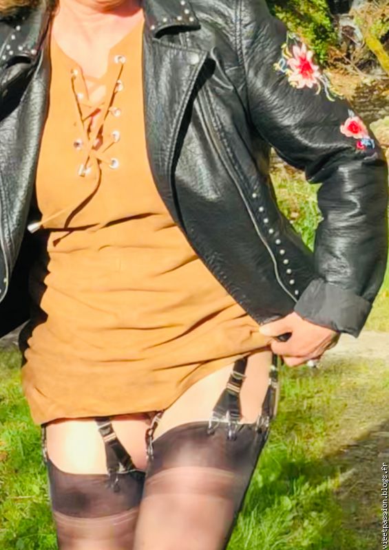 Faut plus que je vienne ici... Non faut plus, tu m'affoles trop. Cette photo est à nouveau une pure merveille. Une robe remontée, les attaches du pj bien apparentes, le joli revers de tes bas nylon, tes belles jambes. Mais moi je craque, je fonds, je suis dans un état second. Je n'ose en dire plus... si ce n'est que tu es terriblement sexy.