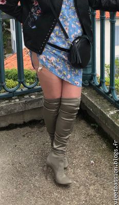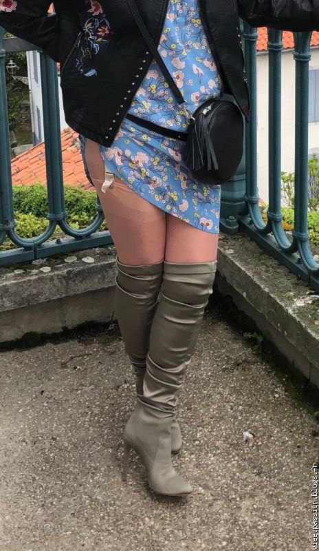 Tout est à louer ici Des bas de la robe bleue jusqu'à ces singulière cuissardes vertes kaki Hmmm