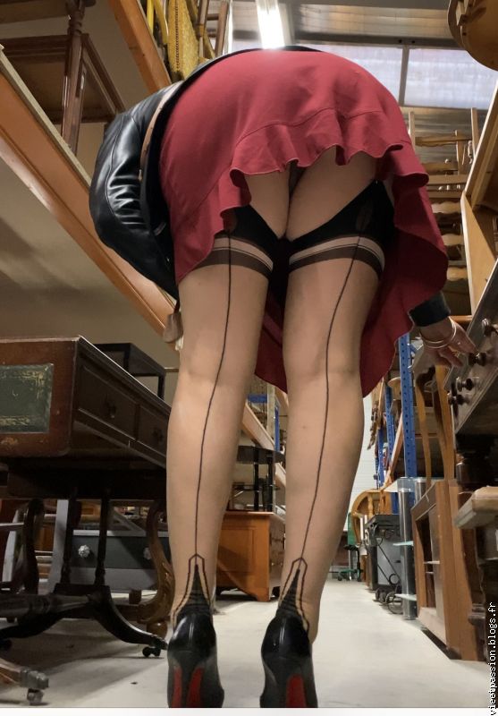 Jolie petite culotte assortie à la jupe. Je suis fan de votre hardiesse ça m'excite terriblement. Et ce délicieux petit bout de dentelle il est pour qui ?