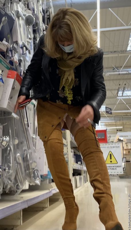 Alors la un grand bravo à vous deux pour oser cette prise de vue. Toujours au magasin de bricolage ? Le genre de vue que l'on imagine dans nos fantasmes , que l'on espère profondément tout en sachant qu'elle ne se réalisera jamais. Et vous l'avez fait Lilly, quel talent et quel audace. Comment vous remercier d'un aussi beau cadeau. Je réve de lécher votre petit abricot par la fente de votre délicieuse petite culotte tellement sexy. Je sent que je vais passer ma nuit sous votre jupe Lilly et je ne vais pas m'ennuyer. Hum ! Quel délice en perspective ! -